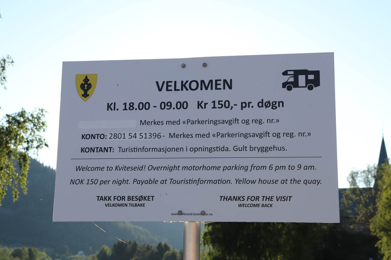 Kviteseid kommune har tilrettelagt denne plassen for bobilar. Det kostar kr 150 pr. natt.